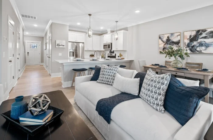 The Jasmine South Community by Herrington Homes is a very charming brand-new community of 40 thoughtfully-crafted townhomes boasting over 2,000 square feet of contemporary living space. With a floor plan designed with comfort and taste in mind, and offering unparalleled included features including soft close cabinets, exquisite quartz countertops, elegantly cased windows, and spacious 2-car garages, Jasmine South embraces the essence of coastal living. These homes feature fenced-in backyards perfect for relaxation and entertainment, all while requiring minimal to no maintenance. Nestled in the heart of Wilmington, North Carolina, you’re just mere minutes from the pristine shores of Carolina Beach for those weekend getaways or spontaneous beach visits and surrounded by an abundance of shopping and dining options, this brand-new community offers the epitome of convenience and comfort for those seeking an escape to a coastal lifestyle.
